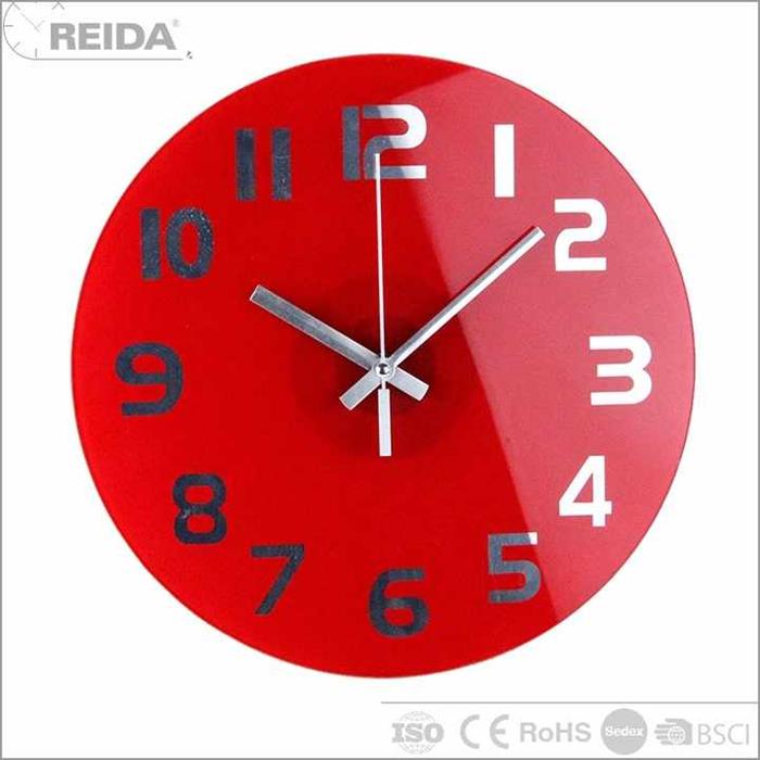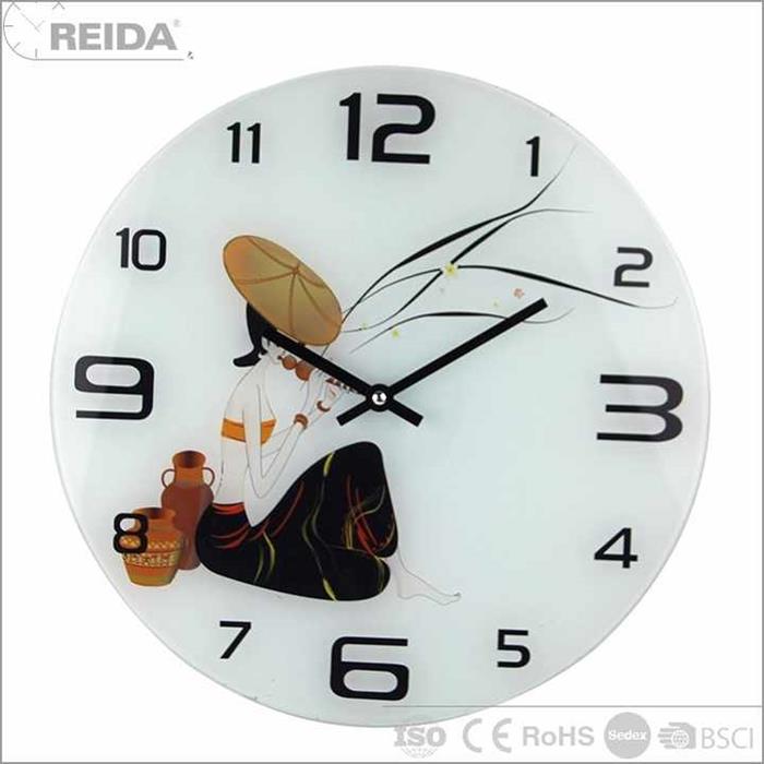 Reida glass analog round no number quartz frameless modern art painting wall clock